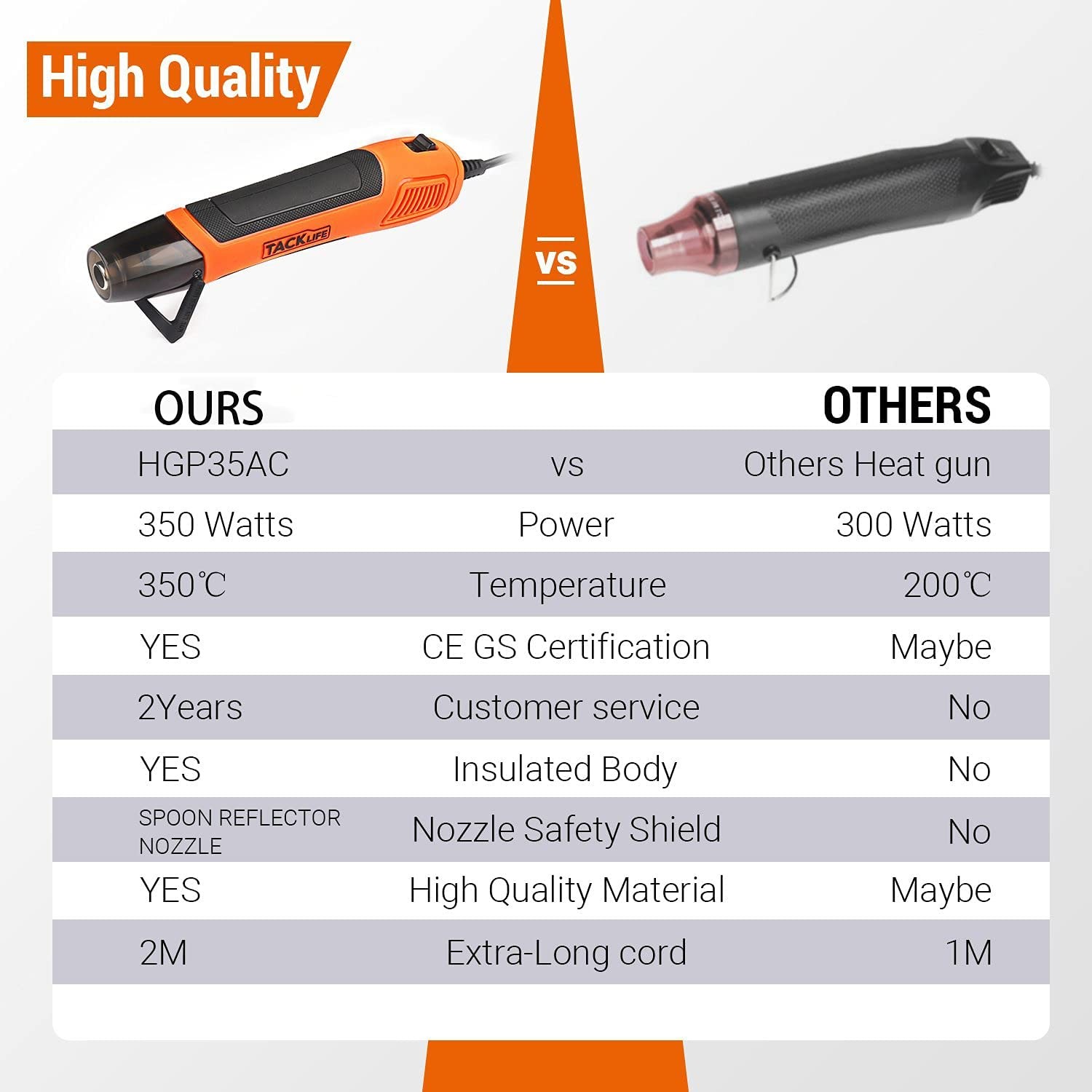 Wide Application and Product Service: With the reflector nozzle, you can use the small heat gun for shrink wrapping, epoxy resin, crafts, vinyl wrap, wire connectors, candle making, shrink tubing, embossing, phone repair, electronics, remove painting, shrink tubing, defrost, remove mud dirt and so on. PRODUCT SERVICE: if you have any questions about our product in 2 years, please contact us, we are happy to help.
